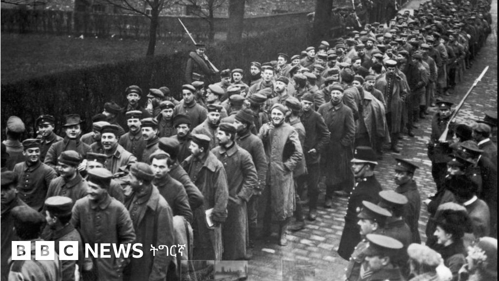 ቀዳማይ ኲናት ዓለም እናቐረበ ምስ መጽአ፡ ሓደ ጀርመናዊ ሓላፊ ኣብ ቀይዲ ንዘይምእታው ክብል ኣብ ሞንጎ ብዙሓት ሰባት ዝተሰለፍሉ ውቅብቲ ጓል ኣንስተይቲ መሲሉ ተሰሊፉ።