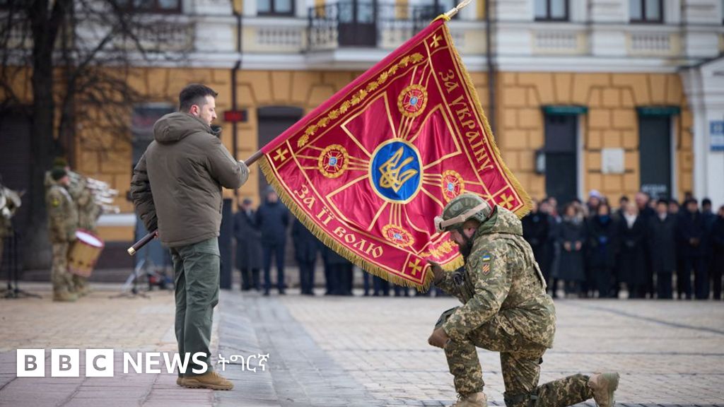 ትማሊ ዓርቢ ኣብ ርእሰከተማ ኪቭ ኣብ ዝተኻየደ ብወተሃደራዊ ምርኢት ዝተሰነየ ውግዓዊ ስነ-ስርዓት፡ ፕረዚደንት ቮሎድሚር ዘለንስኪ ንገለ ወተሃደራትን ስድራቤት ናይቶም ኣብ ኲናት ዝተሰውኡን ኒሻናትን ሽልማትን ብምሃብ ኣጸናኒዑ።