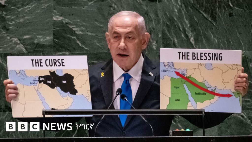 ቀዳማይ ሚኒስተር እስራኤል ኣብዚ ቀረባ እዋን ኣብ ሓፈሻዊ ጉባኤ ሕቡራት ሃገራት ኣብ ዘስምዖ መደረ፡ ክልተ ካርታታት ኣቕሪቡ።