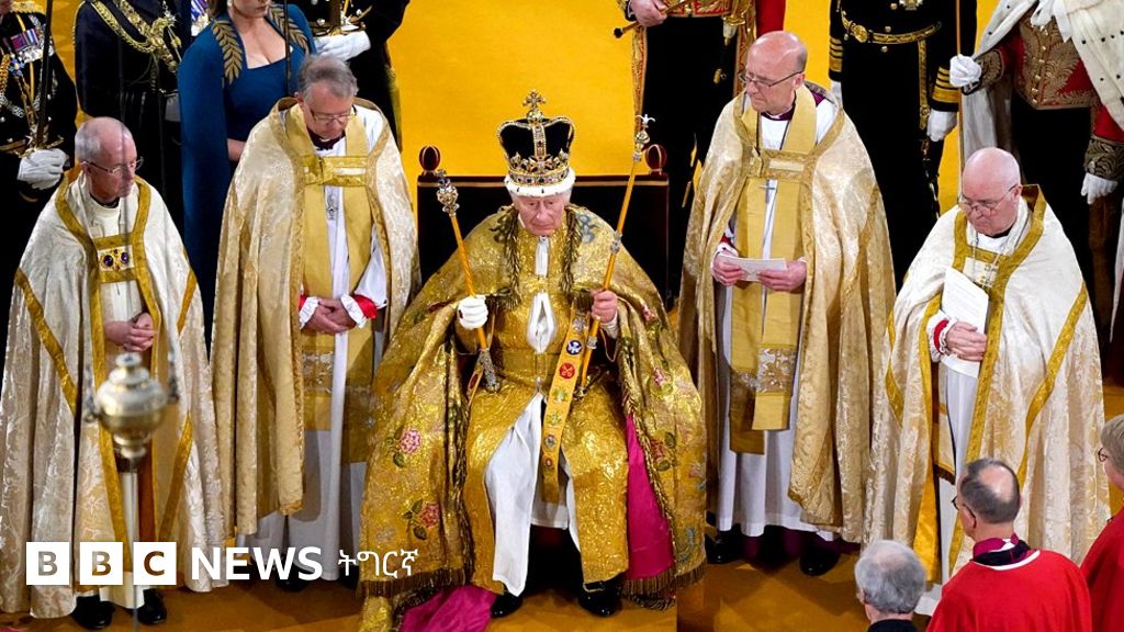 ንጉስ ቻርለስ ሳልሳይ ኣብ ለንደን ዌስትሚኒስተር ኣቢ ኣብ ዝተኻየደ ስነ-ስርዓት ንግስና ታሪኻዊ ዘውዲ ደፊኡ።