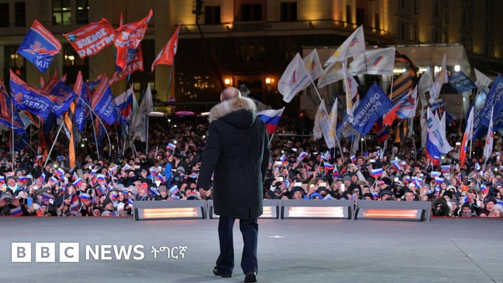 ኣድመጽቲ "ነቶም ኣብ ዝሓለፉ ሒደት ዓመታት ዝተሓፍሱ ዓወታት ኣለልዮሞም'ዮም" ኢሉ ፑቲን ንደገፍቱ ኣብ ከተማ ሞስኮ ኣብ ዘካየዶ ናይ ጎልጎል ኣኼባ።