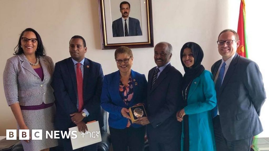 ብኣመሪካዊት ኣደ መንበር ባይቶ ኣሜሪካ ካረን ባስ ዝተመርሑ ሓደስቲ ኣባላት ባይቶ ኣመሪካ ኤርትራዊ ኣሜሪካዊ ጆ ንጉሰን፡ ኣመሪካዊት ሶማላዊት ኢልሃን ዖመርን ናብ ኤርትራ በጺሖም።