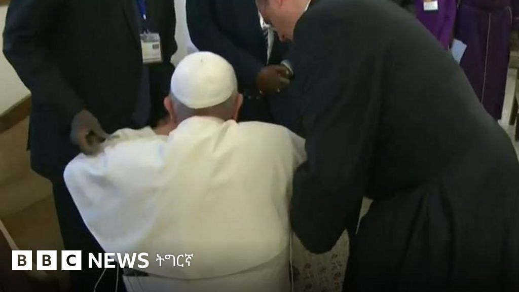 ጳጳስ ፍራንሲስ ኣእጋር እቶም ኣብ ግጭት ዝጸንሑ መራሕቲ ደቡብ ሱዳን ስዒሞም።