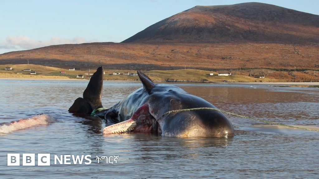እዚ ኣብ ስኮትላንድ ወሽመጥ ሃይሪስ ሞይቱ ዝተረኸበ ዓሳ ነባሪ ልዕሊ ሓደ ኩንታል ጉሓፍ ኣብ ከብዱ ከም ዝጸንሐ ተገሊጹ።