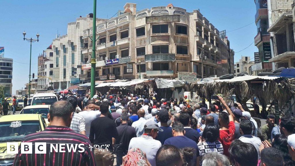 ኣብ ሶርያ ዝመደበራ ሱዋይዳ24 ዝስማ ማዕከን ዜና ዘቃልሓቶ ተንቀሳቃሲ ስእሊ ፡ እቶም ሰልፈኛታት በሽር ኣል ኣሳድ ካብ ስልጣኑ ክእለ ይጠልቡ ምንባሮም የርኢ።
