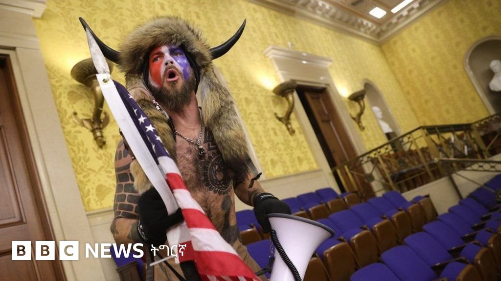 እዚ ንባዕሉ ‘ቃኖን ሻማን’ እናበለ ዝጽውዕ ሰብ፡ ካብቶም ኣብ ዝሓለፈ ረቡዕ ናብ ካፒቶል፡ ውሽጢ ቤት ምኽሪ ኣመሪካ [ኮንግረስ] ብጉልበት ዝኣተዉ ናዕበኛታት፡ ኣብ መንጎኦም ገጹ ብሕብሪ ዝተሸለመ፣ ጀጓፍ ቆቢዕን ቀርንን ገይሩ እዩ ዝረአ።