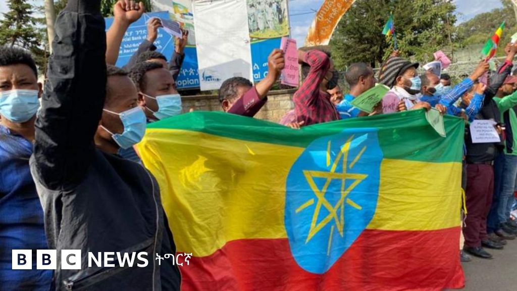 ኣብ ኣዲስ ኣበባ ንተቓውሞ ዝወጽኡ ሰልፈኛታት “ካብ ኢትዮጵያ ኢድኩም ኣልዕሉ” ዝብል ጭርሖ ተሓንጊጦም ማሕበረሰብ ዓለም ካብ ዘቤታዊ ጉዳያት ኢትዮጵያ ኢዶም ክእርንቡ ጸዊዖም።