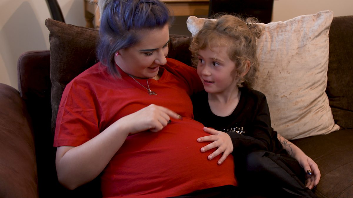 Image caption, Siblings can bond with your baby before birth by talking to bump.