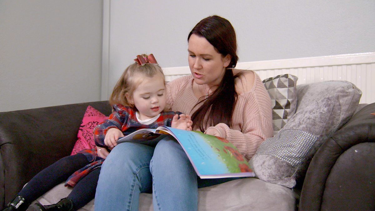Image caption, Wrth i blant bach ddweud mwy o eiriau a dechrau rhoi geiriau gyda’i gilydd i wneud brawddegau byr, maen nhw angen iti ddal ati i helpu i ehangu eu hiaith.