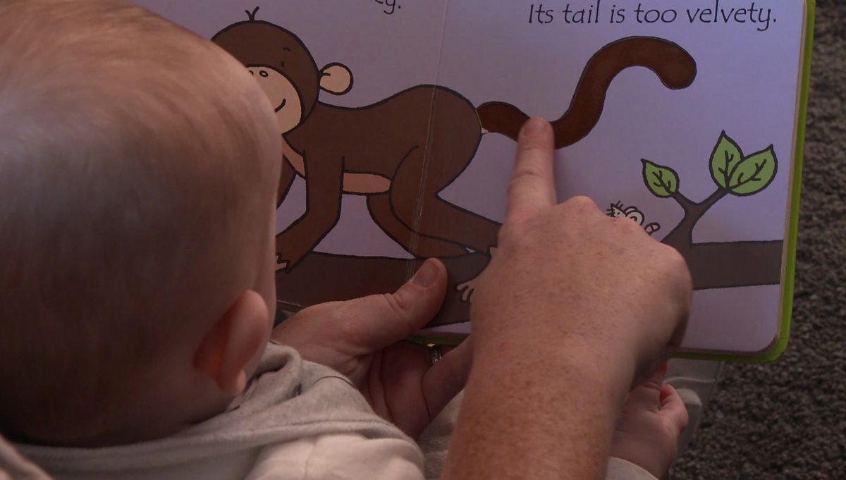 Image caption, Babies love to learn through talk and touch.