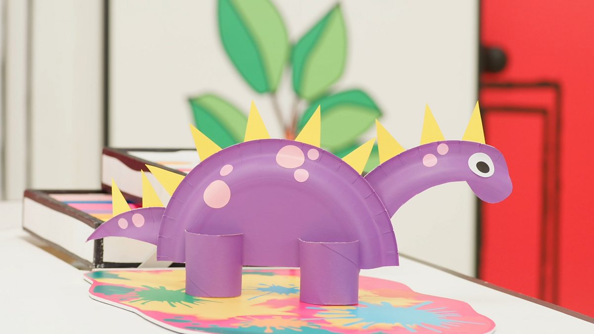 In CBeebies' show Monster Makes, Rebecca is joined by Murphy to create some fun makes you can do at home. See how they make a paper plate dinosaur in this easy, fun craft.