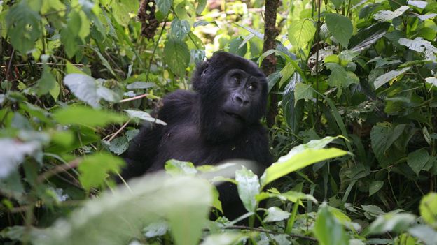 But gorilla tracking is no stroll in the park. It can take anywhere up to 10 hours to find the elusive creatures in the dense undergrowth. Guides lead trekkers up precipitous verges and across rivers, and rusty machetes are used to hack paths through the thick, thorny rainforest. It is the perfect place to live out a childhood Tarzan fantasy, with vast swathes of trees, vines, branches and bushes surrounding trekkers as they penetrate deep into the rainforest.