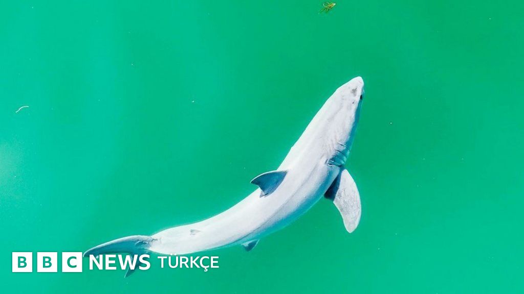 Köpekbalığından beyaz bir katmanın pul pul döküldüğünü fark etti.