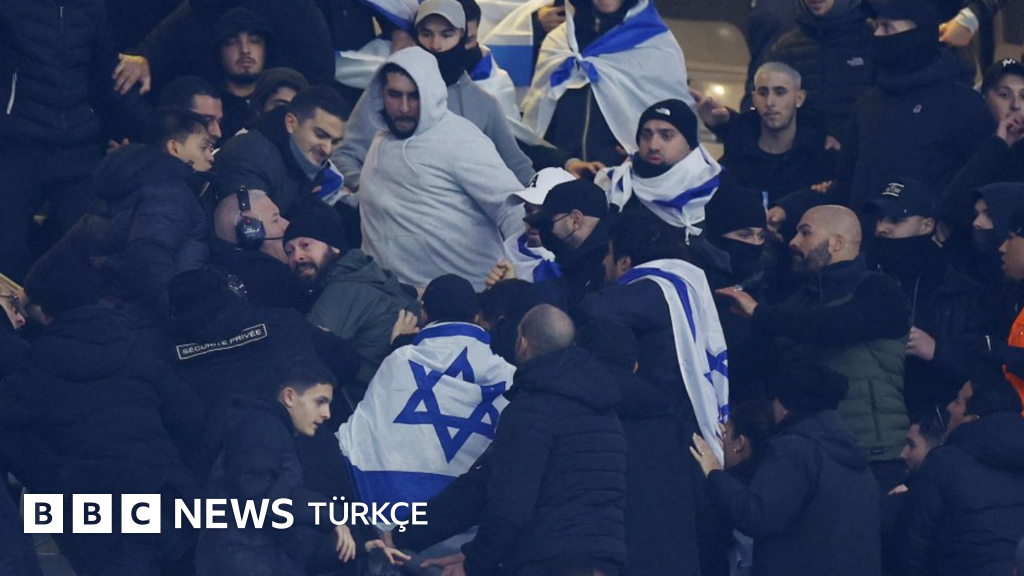 Tribünlerde İsrail taraftarlarının bulunduğu bölümde çıkan arbedeye ilişkin görüntüler de sosyal medyada paylaşılıyor.