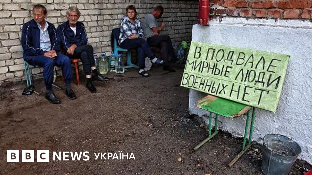 Але Суджа не зовсім покинуте місто. На великому будинку біля входу у підвал напис від руки: "В підвалі мирні люди, військових немає". Біля входу сидить 68-річна Інна. Внизу, каже вона, ще 60 цивільних.