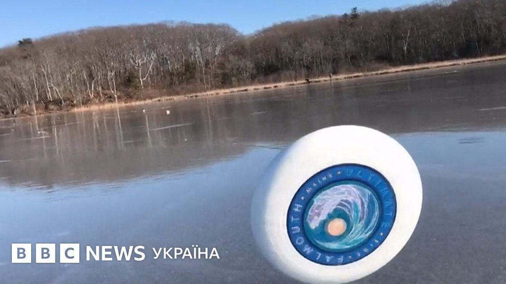 У США молодіжна команда з фризбі зафільмувала, як вітер підхопив літаючий диск і покотив його крижаною поверхнею озера.