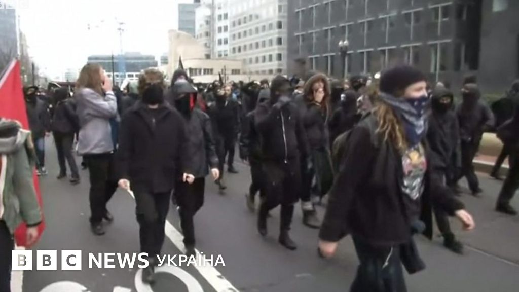 Кілька сотень активістів - у масках, чорному одязі і з чорними анархістськими прапорами, прийшли маршем біля місця інавгурації президента США Дональда Трампа.