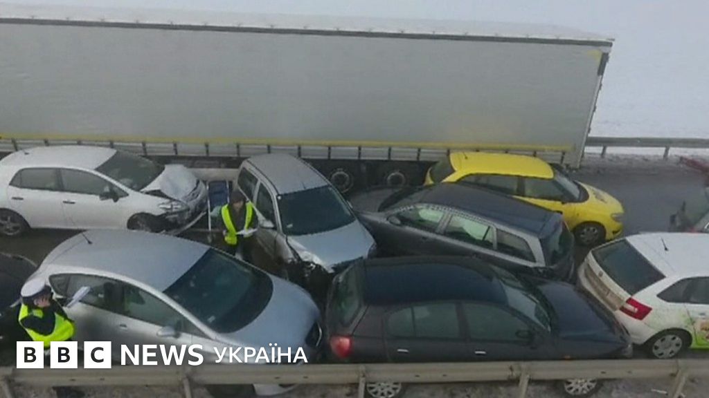 Велика аварія почалася із зіткнення вантажівки та легковика, які перегородили дорогу іншим автомобілям.