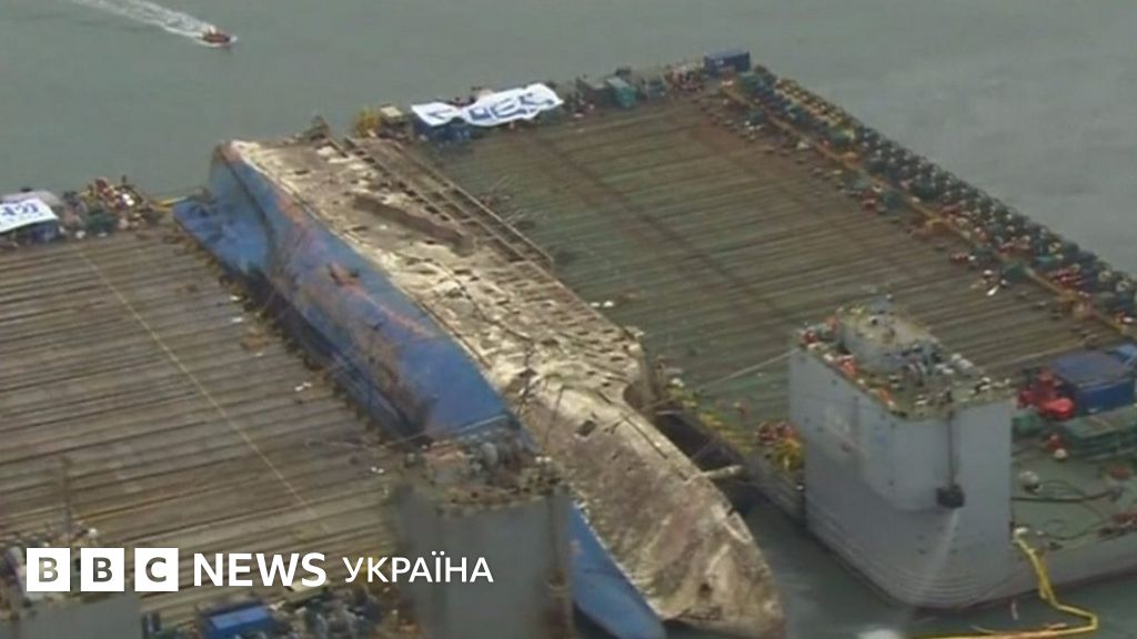 У Південній Кореї з глибини 44 метра піднято корпус затонулого судна “Севоль”.