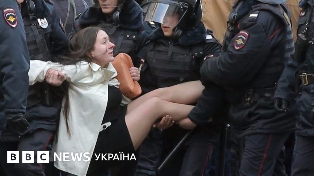 Недільні протести у Росії багатьом запам’яталися фотографією, на якій декілька поліцейських несуть дівчину в пальто.