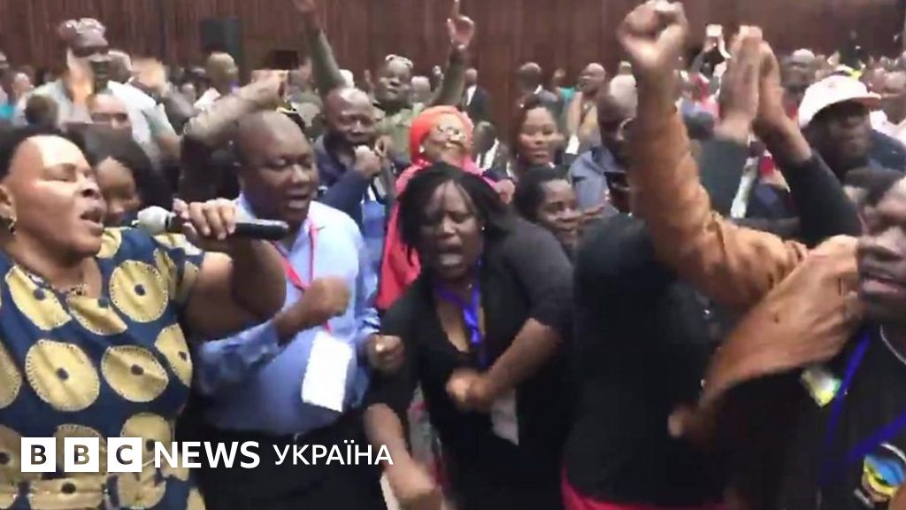 Делегати урядової партії Зімбабве кинулися танцювати і співати після того, як президента Мугабе звільнили з посади лідера урядової партії Zanu-PF, яку він очолював кілька десятиліть.