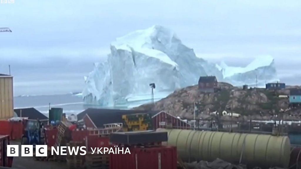 Величезний айсберг буквально висить над селищем Іннарсвіт, що у західній Гренландії.