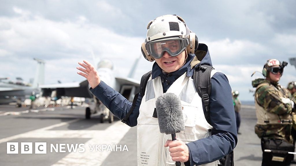 Кореспонденти ВВС News Україна прилетіли на авіаносець якраз в розпал навчань.