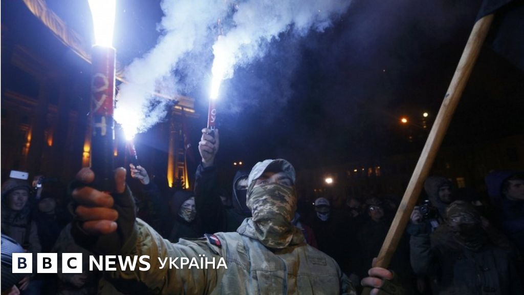 Підходи до офісу на вулиці Десятинній заблокували співробітники Національної гвардії, тож активісти не змогли впритул підійти до будівлі і жбурляли каміння повз голови правоохоронців.