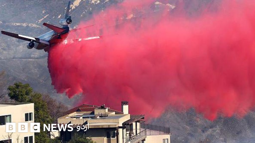 امریکہ میں جنوبی کیلیفورنیا میں فائر فائٹرز متعدد مقامات پر لگنے والی خطرناک آگ پر قابو پانے کی کوششیں کر رہے ہیں اور اسی دوران کچھ ایسی تصاویر دیکھنے میں آئی ہیں جس میں ہوائی جہاز لاس اینجلس کے نواحی علاقوں پر سُرخ اور گُلابی پاؤڈر برسا رہے ہیں۔