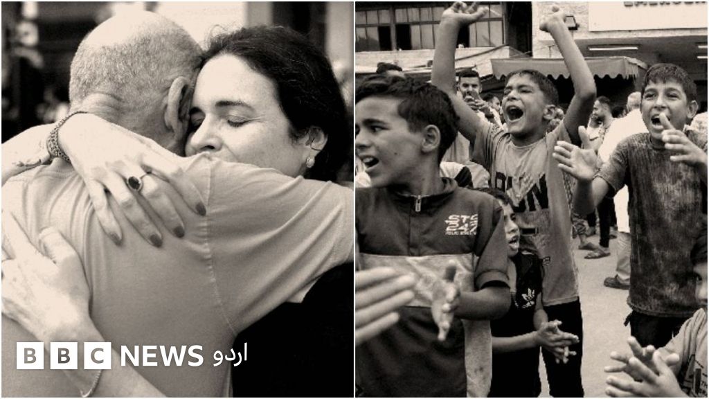 فلسطینیوں نے غزہ کے کھنڈرات میں جشن منایا۔ یرغمالیوں کے بدلے میں اسرائیل نے عمر قید کی سزا کاٹنے والے 250 قیدیوں اور 1700 زیر حراست افراد کو رہا کرنے پر اتفاق کیا ہے جنھیں آئی ڈی ایف نے گذشتہ دو سالوں کے دوران غزہ سے حراست میں لیا ہے۔