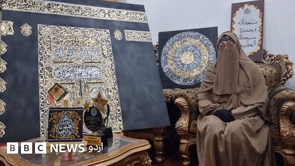 حلیمہ خٹک کے مطابق وہ جب بھی خانہ کعبہ کو دیکھتی تھیں تو اس غلاف کے بارے میں سوچتی تھیں کہ ’میں کیسے یہ لکھنا سیکھ سکتی ہوں۔ پھر میں نے آن لائن عریبک کیلی گرافی کے بارے میں معلومات لینا شروع کیں۔‘
