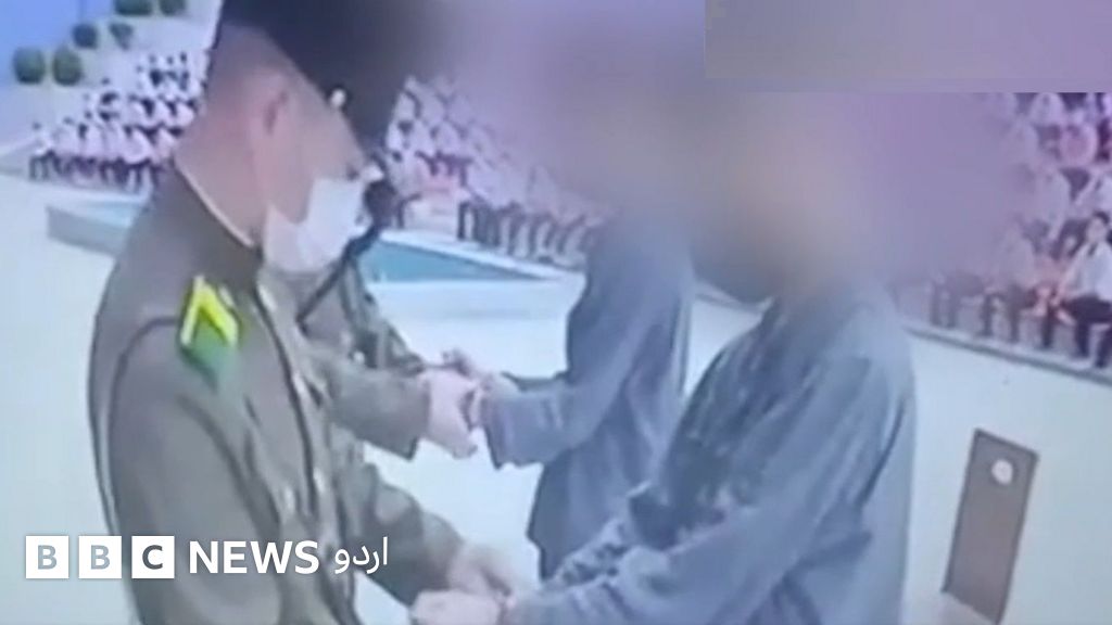 اس فوٹیج کو 2022 میں فلمایا گیا تھا، جس میں دو 16 سالہ لڑکوں کو سٹیڈیم میں سینکڑوں طالب علموں کے سامنے ہتھکڑیاں لگاتے ہوئے دکھایا گیا۔