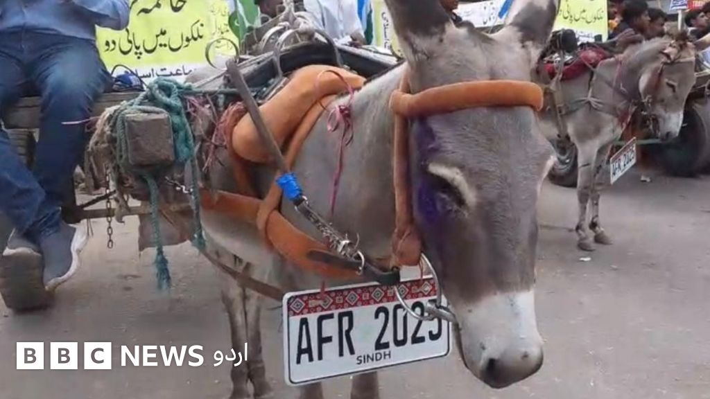 کراچی میں احتجاج کے دوران گدھوں کے گلے میں اجرک والی نمبر پلیٹ: ’یہ محض احتجاج نہیں بلکہ سندھی ثقافت کی کھلی توہین ہے‘