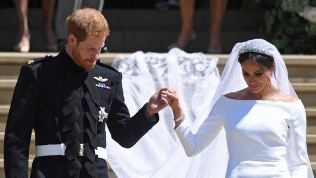 ،ویڈیو کیپشنہیری اور میگن کی شادی کی جھلکیاں شاہی جوڑے کی ایک جھلک