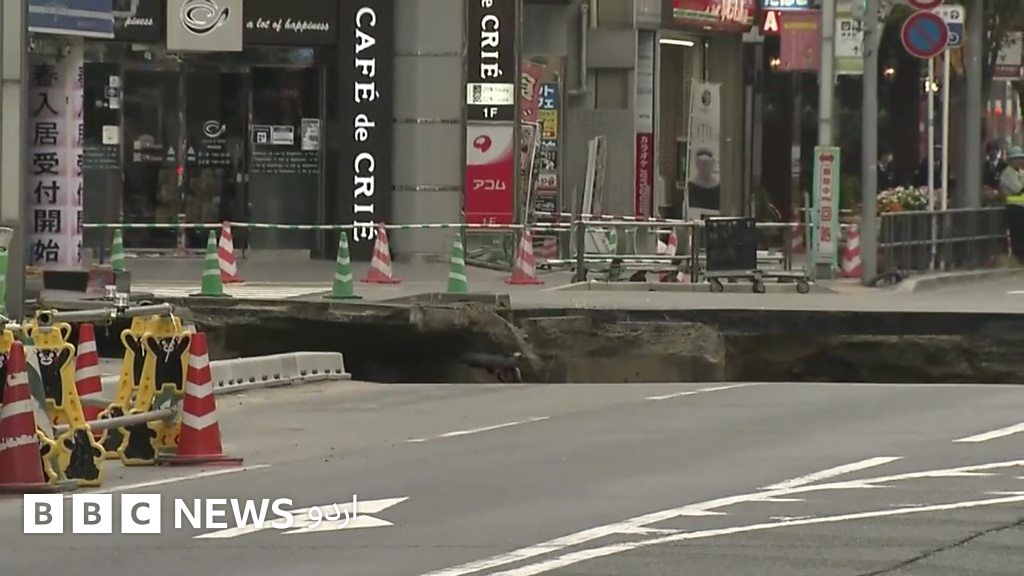 جاپان کے شہر فوکوکا کی سڑک پر اچانک نمودار ہونے والا گڑھا۔
