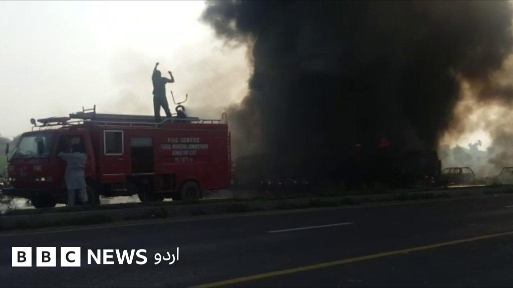 پاکستان کے صوبہ پنجاب کے ضلع بہاولپور میں تیل سے بھرے ٹینکر میں الٹنے کے بعد آگ لگنے کے نتیجے میں 120 سے زیادہ افراد ہلاک اور 80 سے زیادہ جھلس گئے ہیں۔ ویڈیو بشکریہ جاوید، مقامی صحافی