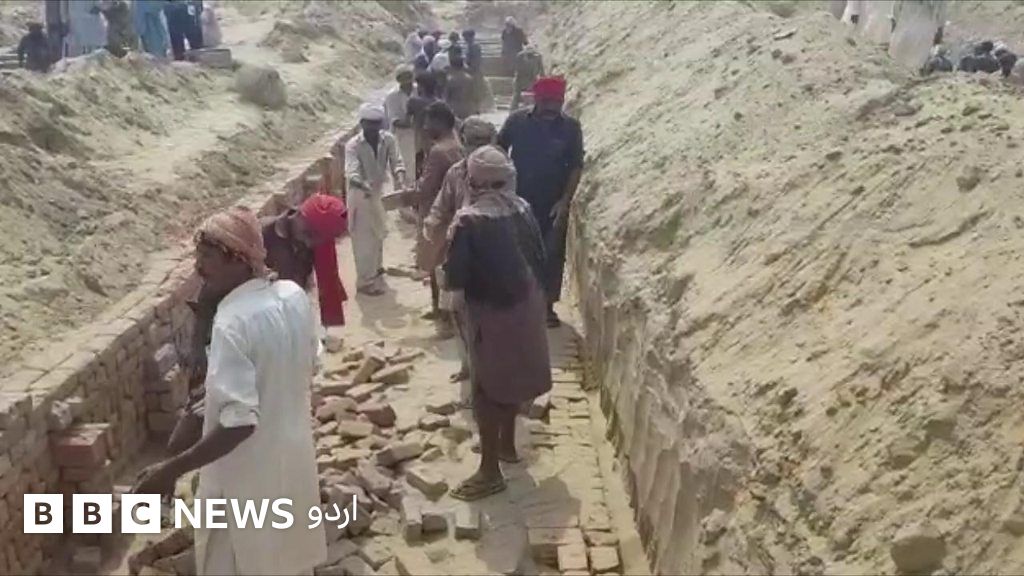 بہاولپور میں احمد پور شرقیہ کے قریب پیش آنے والے آئل ٹینکر کے حادثے میں ہلاک ہونے والوں میں سے ناقابل شناخت لاشوں کی عارضی تدفین کے لیے اجتماعی قبروں کی کھدائی کی جا رہی ہے۔