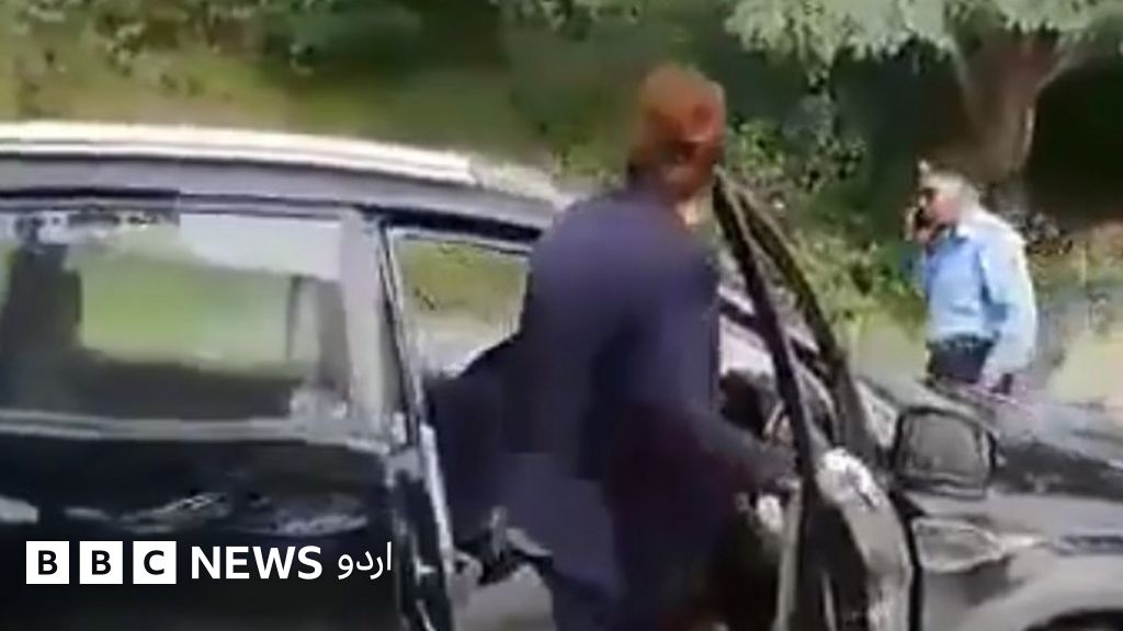 اس کے بعد پولیس اہلکار کو اپنا فون دیتی ہیں جس پر وہ سمجھانے کی کوشش کر رہا ہے کہ ان کو کہا کہ’ جو لوگ اندر جا رہے ہیں ۔۔۔ ان کے نام دے دیں اور گاڑی کا نمبر۔۔۔ تو اس پر خاتون گاڑی کے اندر سے نمبر پلیٹ نکال کر دکھاتی ہیں کہ یہ نمبر پلیٹ ۔۔۔ یہ دیکھ ۔۔۔‘