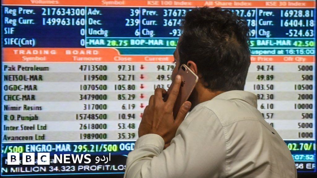 پاکستان سٹاک ایکسچنج کا بنچ مارک کے ایس ای 100 انڈیکس سٹاک مارکیٹ میں حصص کی خرید و فروخت کا پیمانہ سمجھا جاتا ہے۔ یہ انڈیکس گذشتہ ہفتے کے اختتام پر 5.6 فیصد کمی کے ساتھ بند ہوا۔ پاکستان سٹاک ایکسچنج میں کاروبار میں شدید مندی کا ایسا رجحان دیکھنے میں آیا کہ گذشتہ ہفتے میں حصص مارکیٹ میں خرید و فروخت کو تین بار روکنا پڑا۔ سٹاک مارکیٹ کی اصطلاح میں ’ٹریڈنگ ہالٹ‘ اس وقت عمل میں لائی جاتی ہے جب پانچ منٹ کے دورانیہ میں مارکیٹ مسلسل پانچ فیصد سے بھی زیادہ گرے۔