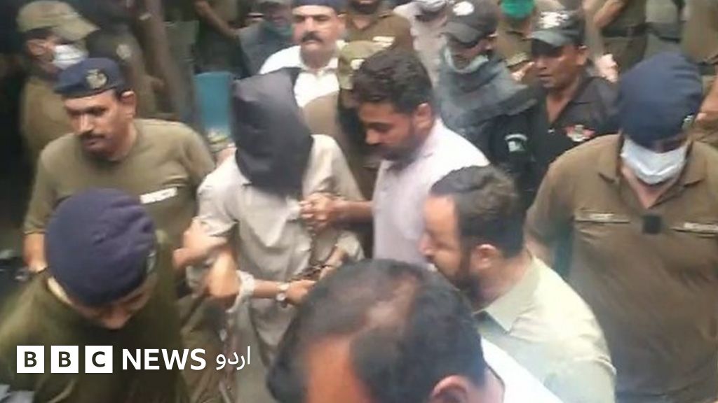 نامہ نگار ترہب اصغر کے مطابق منگل کی دوپہر ملزم کو پولیس کے سخت پہرے میں چہرہ ڈھانپ کر پہلے سیشن کورٹ اور پھر انسداد دہشت گردی کی عدالت میں پیش کیا گیا۔