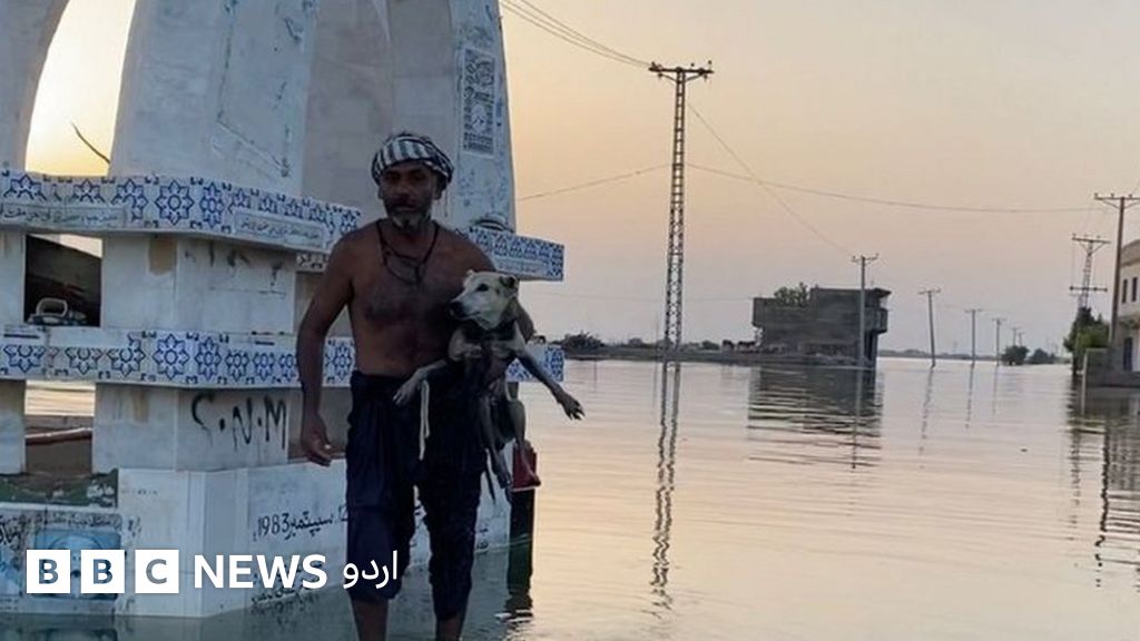 سندھ کے شہر خیرپور ناتھن شاہ میں پانی میں ڈوبے اللہ والا چوک پر ایک شخص موجود تھا جس نے بغل میں ایک کتا اٹھا رکھا تھا۔