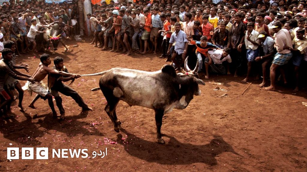 انڈیا کی جنوبی ریاست تمل ناڈو میں ہزاروں افراد بل فائٹنگ سے مشابہ صدیوں پرانے کھیل جلّی کٹّو پر پابندی کے خلاف احتجاجی مظاہرے کر رہے ہیں۔
