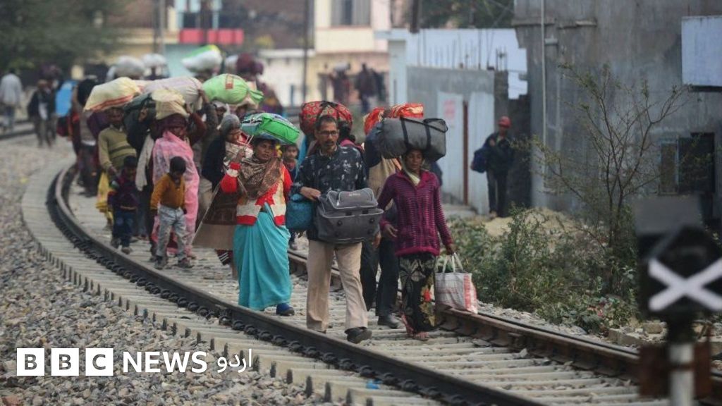 ،تصویر کا کیپشنانڈیا میں لاک ڈاؤن کے بعد بہت سے لوگوں نے پیدل ہی اپنے آبائی علاقوں کا رخ کیا تھا
