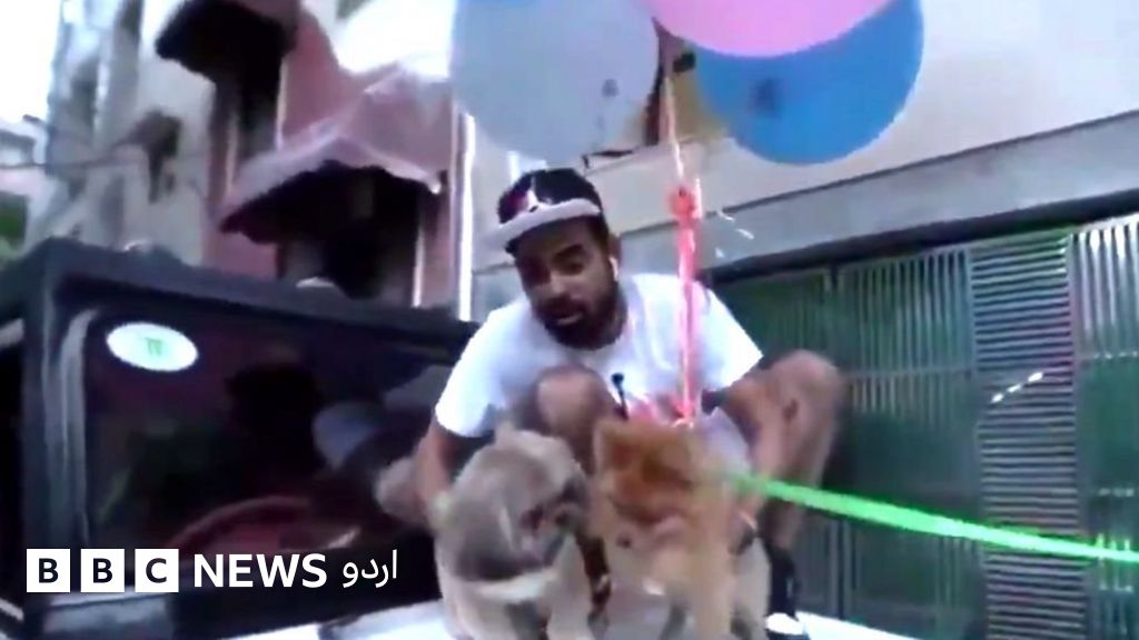بتیس سالہ گورو شرما کی بنائی گئی ایک ویڈیو میں دیکھا جا سکتا ہے کہ انھوں نے اپنے پالتو کتے کو گیس بھرے غباروں سے باندھا اور ہوا میں اڑنے کے لیے چھوڑ دیا۔