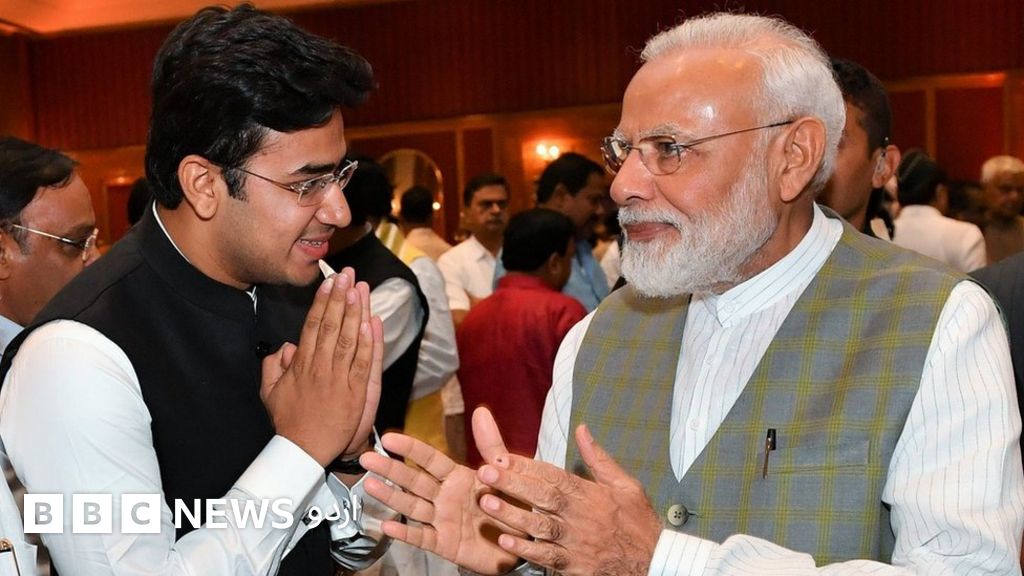 ،تصویر کا کیپشنتیجسوی سوریا کے عروج کی ایک وجہ ان کے نریندر مودی سے اچھے تعلقات کو بھی سمجھا جاتا ہے