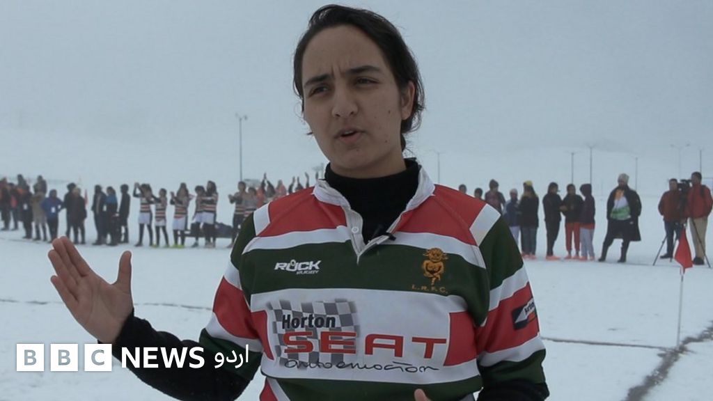 برف پر رگبی کھیلتی کشمیری لڑکیاں