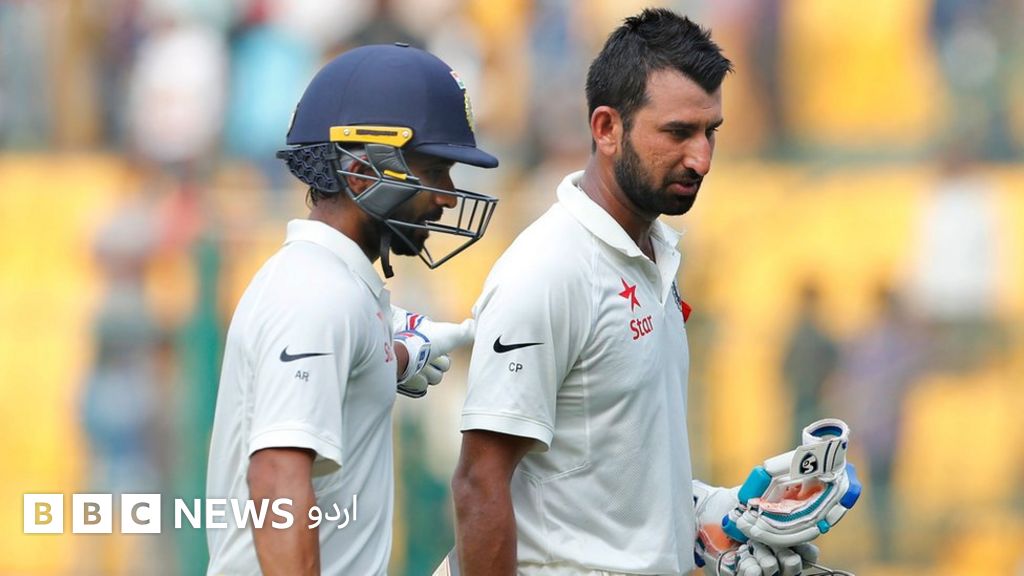 بنگلور ٹیسٹ میں پجارا اور ریہانے کی ذمہ دارانہ بیٹنگ، انڈیا کی برتری 126 رنز