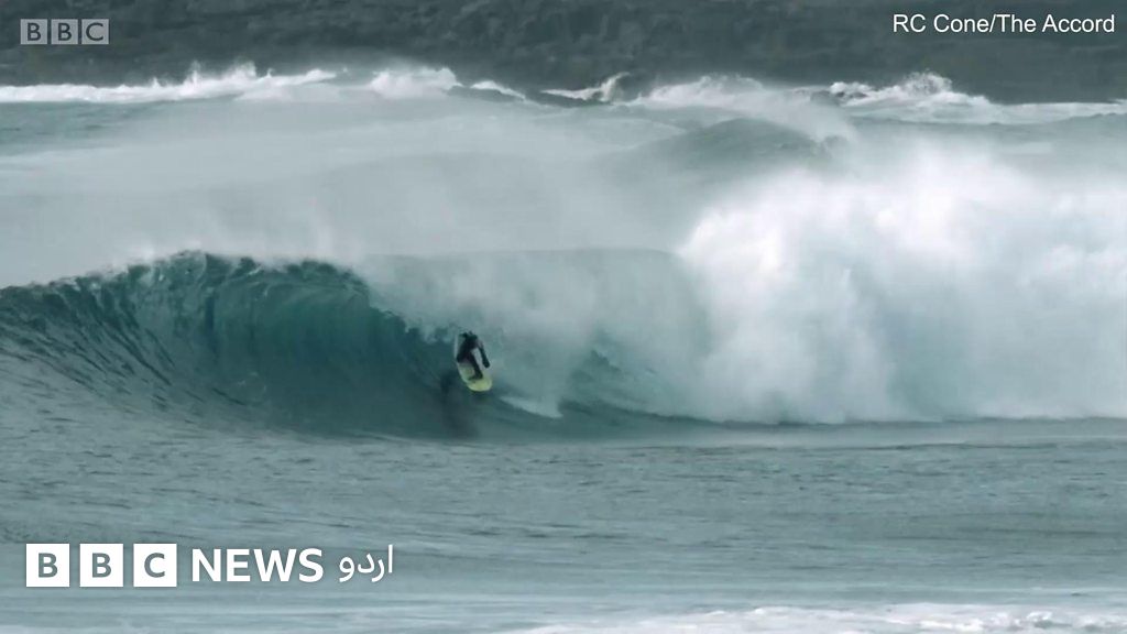 منجمد پانی اور قطبی روشنی میں سرفنگ