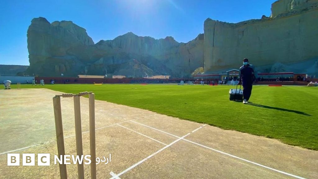 کرکٹ گراؤنڈ کے پس منظر میں واقع پہاڑ اس کی خوبصورتی میں اضافہ کر دیتے ہیں۔
