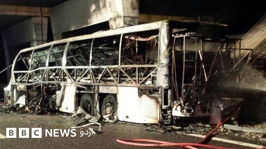 حکام کا کہنا ہے کہ حادثے کے بعد بس میں آگ لگ گئی۔